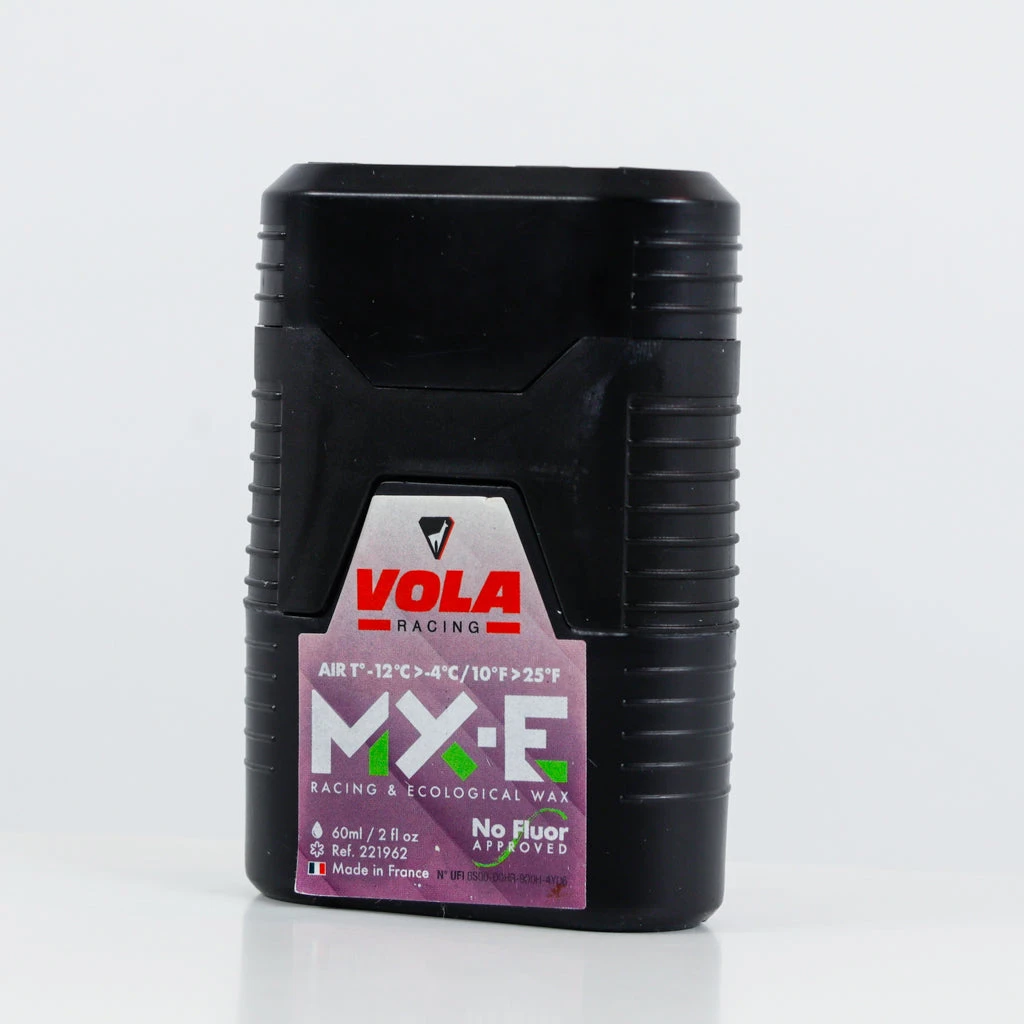 The Vola MX-E Wax you know and love, now in a convenient liquid formula. MX-E wax is designed to give you gliding performance. This wax contains more than 50% of raw materials of vegetable and animal origin. Its container is recycled cardboard and is 100% biodegradable and recyclable. The MX-E will perform similar to traditional hydrocarbon-based waxes.Â